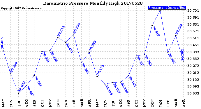 Milwaukee Weather -- 20170528 Barometric Pressure