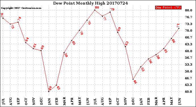 Milwaukee Weather -- 20170724 Dew Point