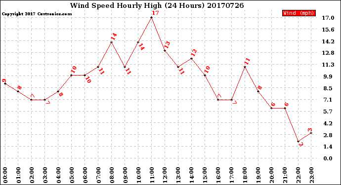 Milwaukee Weather -- 20170726 Wind Speed