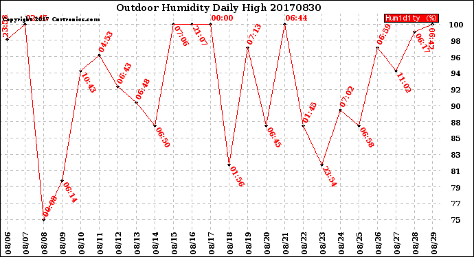 Milwaukee Weather -- 20170830 Outdoor Humidity