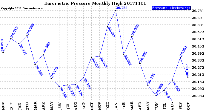 Milwaukee Weather -- 20171101 Barometric Pressure