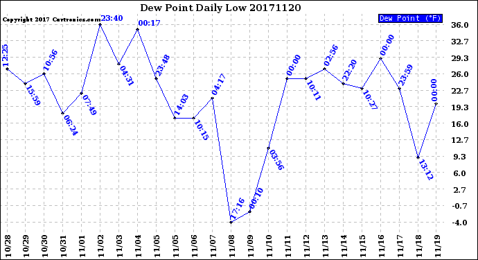 Milwaukee Weather -- 20171120 Dew Point
