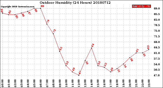 Milwaukee Weather -- 20180712 Outdoor Humidity