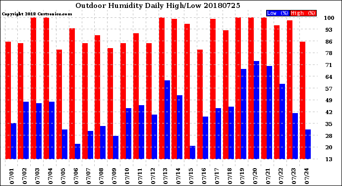 Milwaukee Weather -- 20180725 Outdoor Humidity