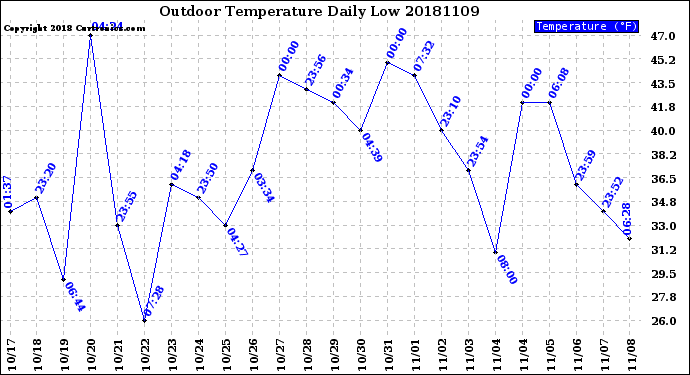 Milwaukee Weather -- 20181109 Outdoor Temperature