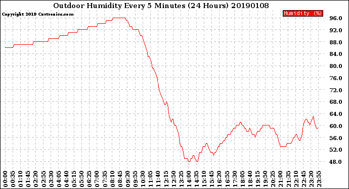 Milwaukee Weather -- 20190108 Outdoor Humidity
