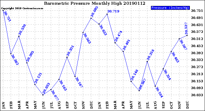 Milwaukee Weather -- 20190112 Barometric Pressure