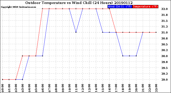 Milwaukee Weather -- 20190112 Outdoor Temperature
