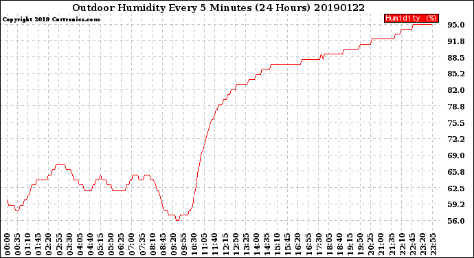 Milwaukee Weather -- 20190122 Outdoor Humidity