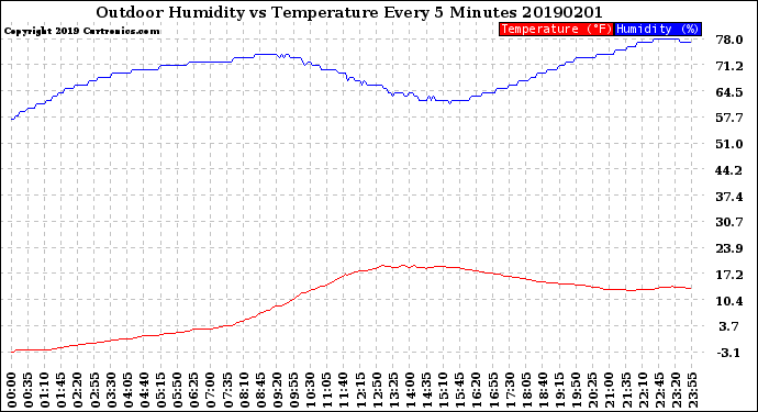 Milwaukee Weather -- 20190201 Outdoor Humidity