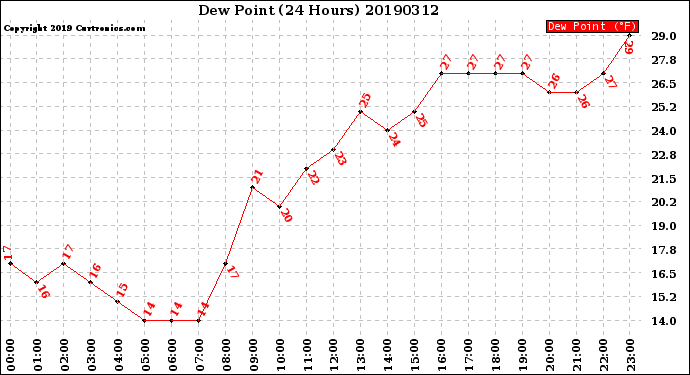 Milwaukee Weather -- 20190312 Dew Point