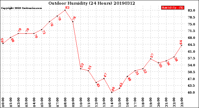 Milwaukee Weather -- 20190312 Outdoor Humidity