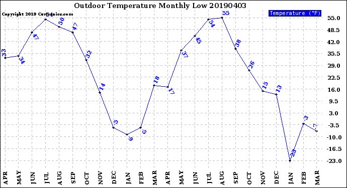 Milwaukee Weather -- 20190403 Outdoor Temperature