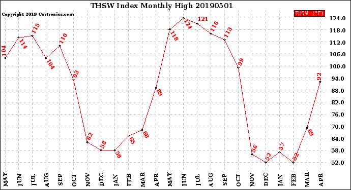 Milwaukee Weather -- 20190501 THSW Index