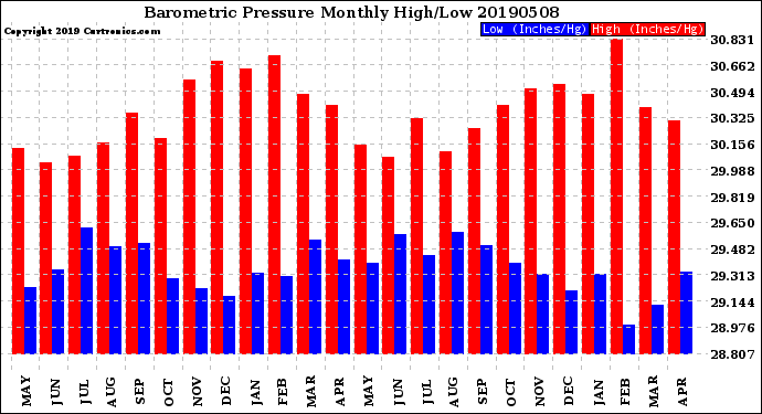 Milwaukee Weather -- 20190508 Barometric Pressure