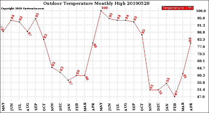 Milwaukee Weather -- 20190528 Outdoor Temperature