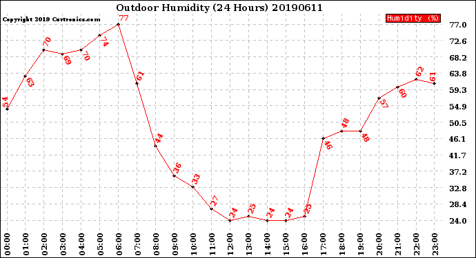 Milwaukee Weather -- 20190611 Outdoor Humidity