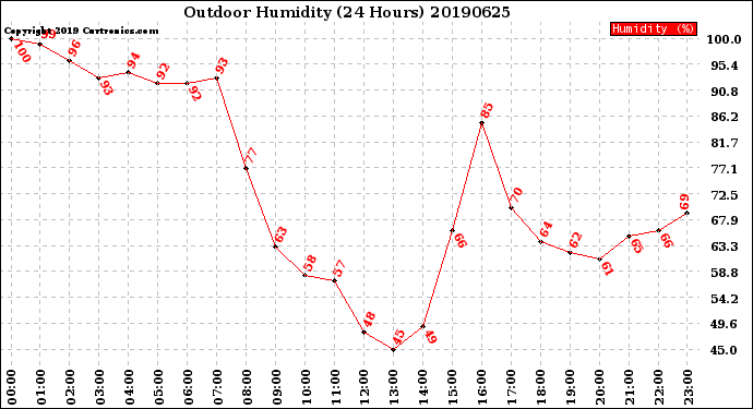 Milwaukee Weather -- 20190625 Outdoor Humidity