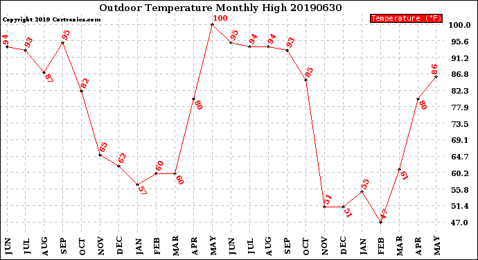Milwaukee Weather -- 20190630 Outdoor Temperature