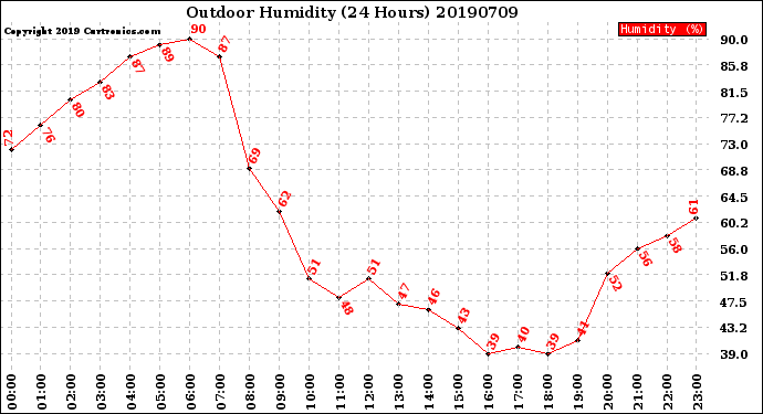 Milwaukee Weather -- 20190709 Outdoor Humidity