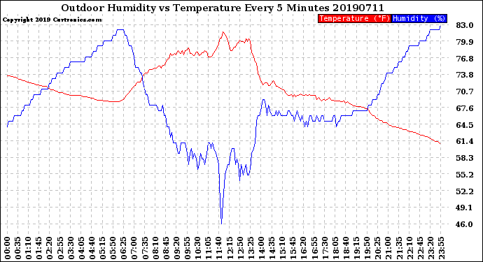 Milwaukee Weather -- 20190711 Outdoor Humidity