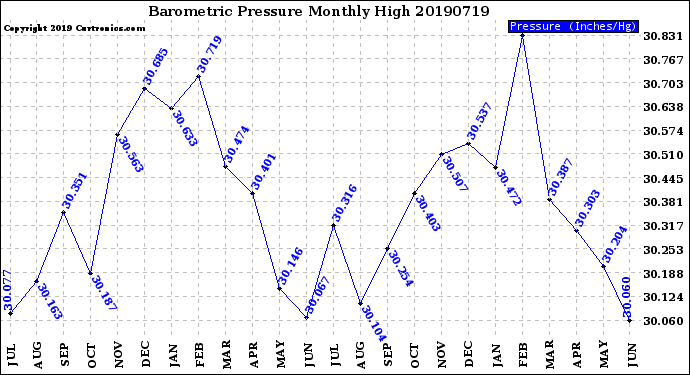 Milwaukee Weather -- 20190719 Barometric Pressure