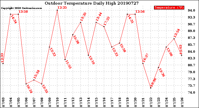 Milwaukee Weather -- 20190727 Outdoor Temperature