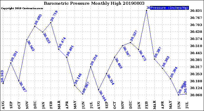 Milwaukee Weather -- 20190803 Barometric Pressure