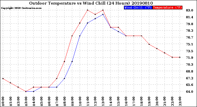 Milwaukee Weather -- 20190810 Outdoor Temperature