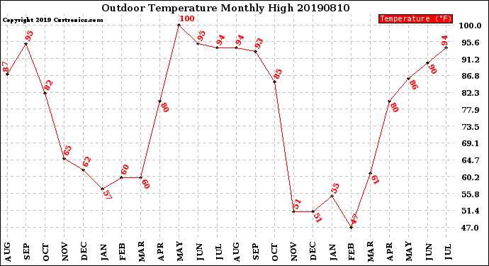 Milwaukee Weather -- 20190810 Outdoor Temperature