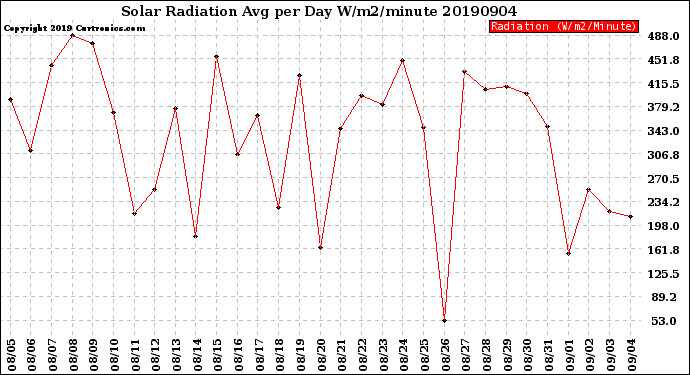 Avg per Day W/m2/minute -- From curtronics.com by Curt Blank
