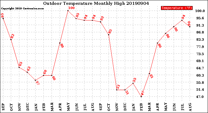 Milwaukee Weather -- 20190904 Outdoor Temperature
