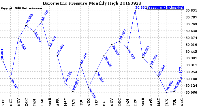Milwaukee Weather -- 20190928 Barometric Pressure
