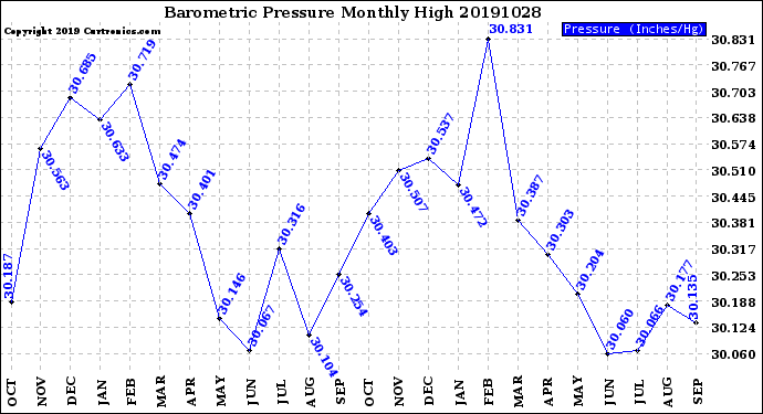 Milwaukee Weather -- 20191028 Barometric Pressure