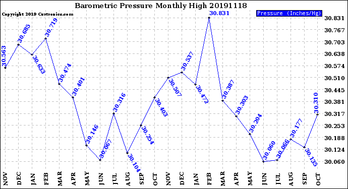 Milwaukee Weather -- 20191118 Barometric Pressure