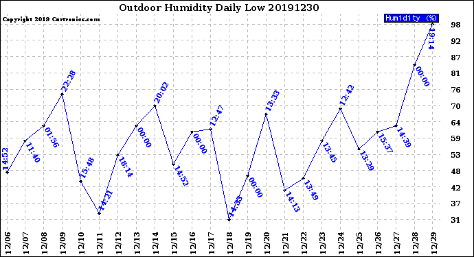 Milwaukee Weather -- 20191230 Outdoor Humidity