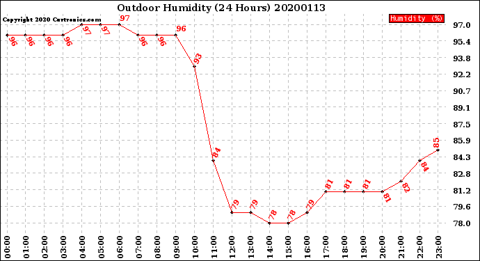 Milwaukee Weather -- 20200113 Outdoor Humidity