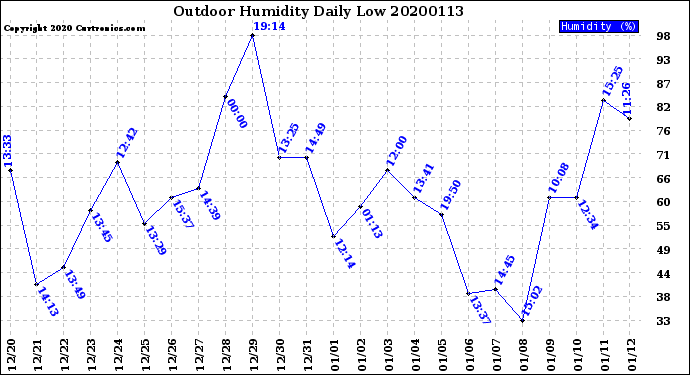 Milwaukee Weather -- 20200113 Outdoor Humidity