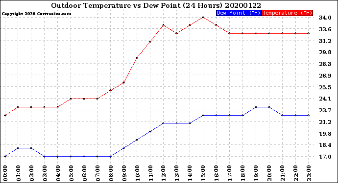 Milwaukee Weather -- 20200122 Outdoor Temperature