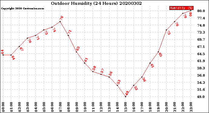 Milwaukee Weather -- 20200302 Outdoor Humidity