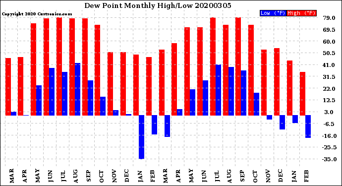 Milwaukee Weather -- 20200305 Dew Point