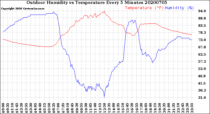 Milwaukee Weather -- 20200705 Outdoor Humidity