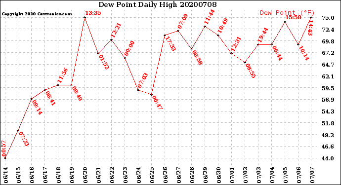 Milwaukee Weather -- 20200708 Dew Point