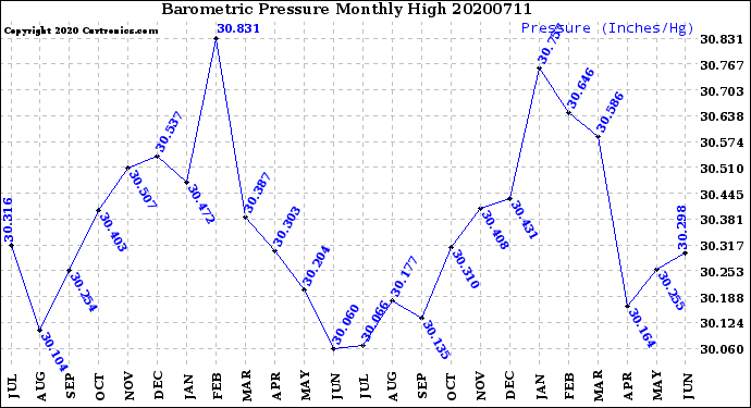 Milwaukee Weather -- 20200711 Barometric Pressure