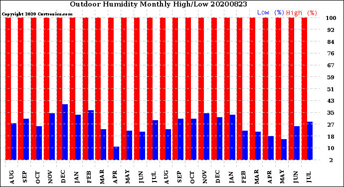 Milwaukee Weather -- 20200823 Outdoor Humidity