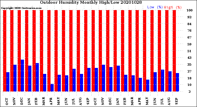 Milwaukee Weather -- 20201028 Outdoor Humidity