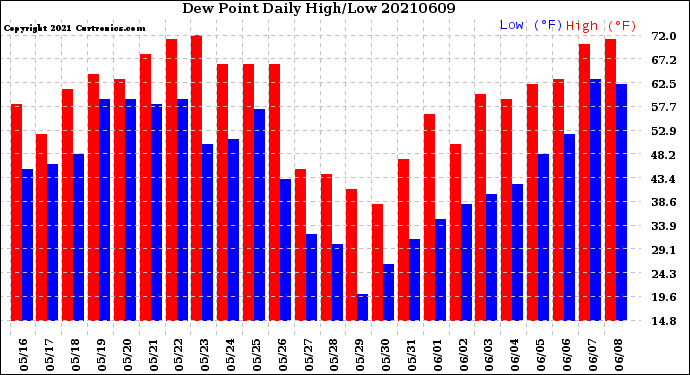 Milwaukee Weather -- 20210609 Dew Point