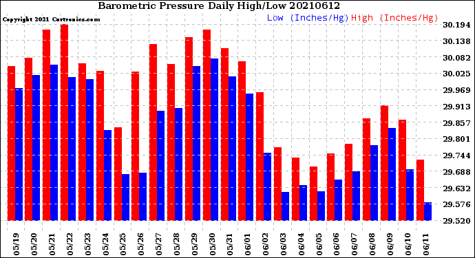 Milwaukee Weather -- 20210612 Barometric Pressure