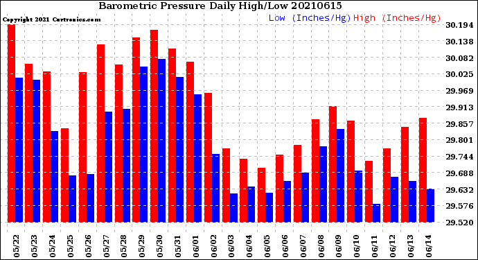 Milwaukee Weather -- 20210615 Barometric Pressure