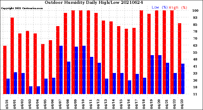 Milwaukee Weather -- 20210624 Outdoor Humidity
